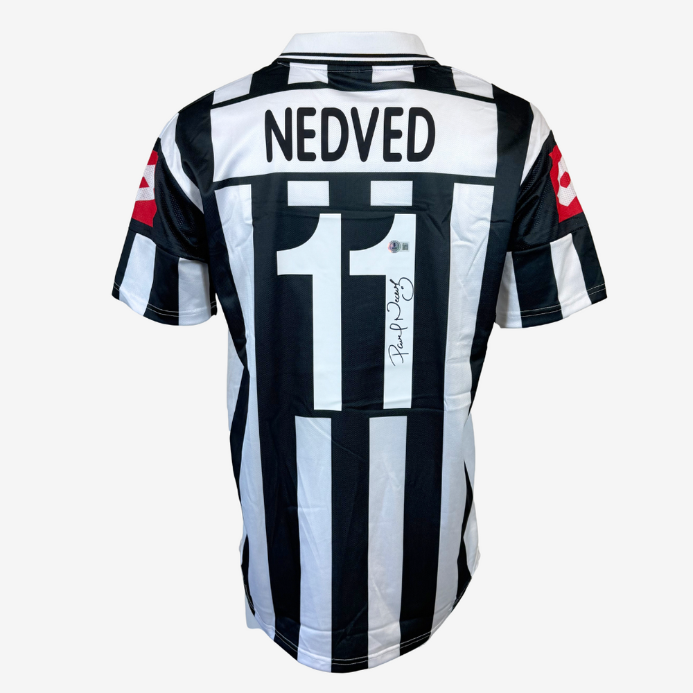 احتفل ببراعة أحد أبرز لاعبي خط وسط يوفنتوس مع هذا القميص الرسمي لموسم 2001-02 الموقع بخط اليد من قبل بافل ندفيد. تم توقيع هذا القميص شخصيًا من قبل ندفيد خلال جلسة توقيع معتمدة من بيكيت في تورينو بتاريخ 17 أكتوبر 2024.