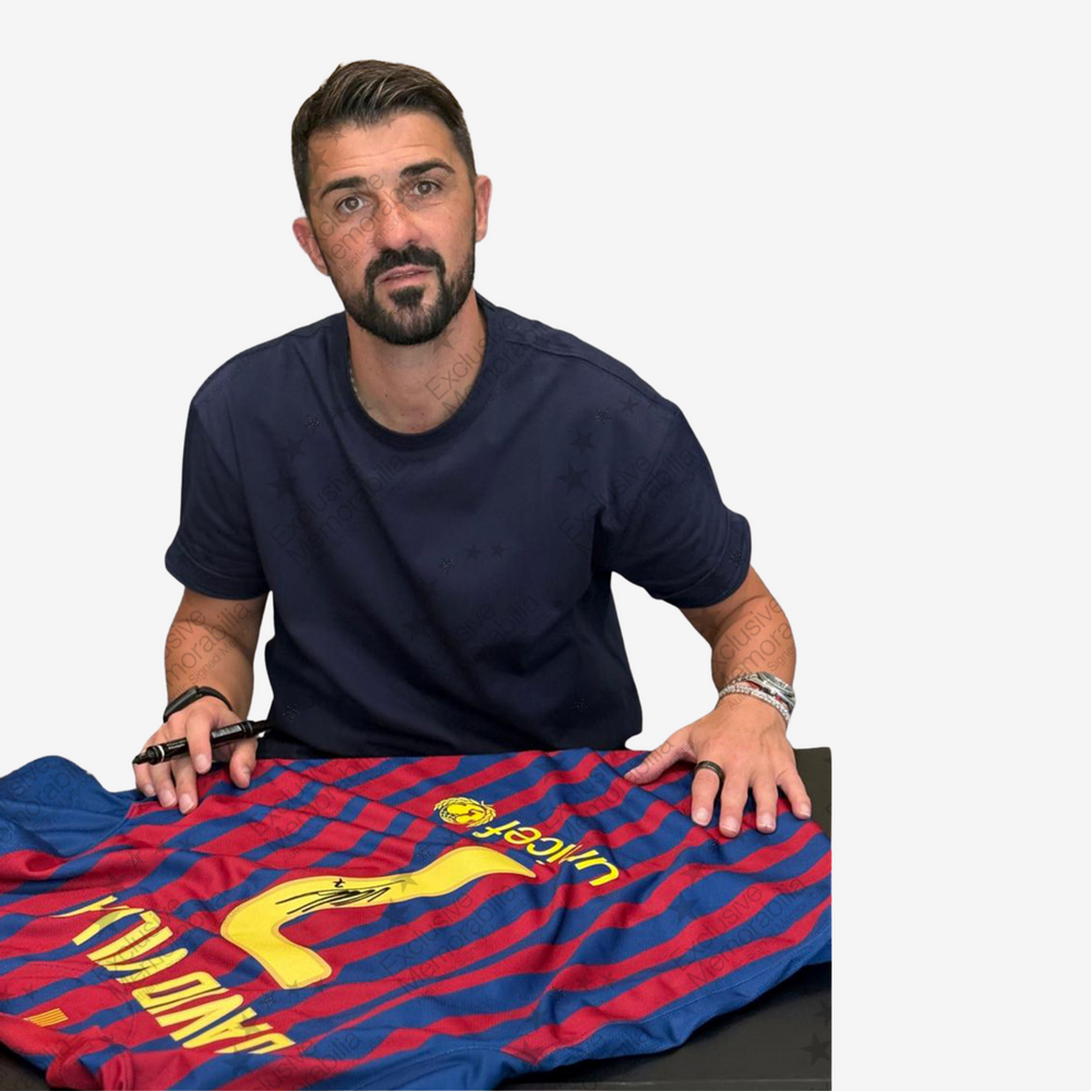 Celebrate the achievements of a Spanish football icon with this original 2011-12 FC Barcelona home shirt, hand-signed by David Villa. Signed in Madrid on September 16, 2025, this shirt features fan style printing and Villa’s autograph on the front. Please note: as this is an original shirt from the era, some natural wear and tear may be present, adding to its authenticity and vintage appeal.