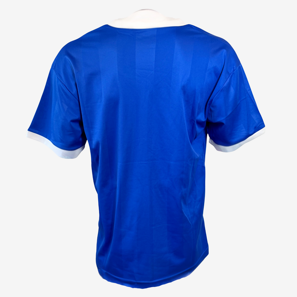 Dies ist der Trikotstil, den Maradona während der unvergesslichen Weltmeisterschaft 1986 in Mexiko trug, bei der er Argentinien zum zweiten WM-Titel führte. Das Trikot ist vorne signiert und trägt keine Nummer auf dem Rücken, was es zu einem einzigartigen Sammlerstück macht. Maradonas Leistungen 1986, darunter die berühmte „Hand Gottes“ und das „Tor des Jahrhunderts“, sicherten ihm einen festen Platz in der Fußballgeschichte.
