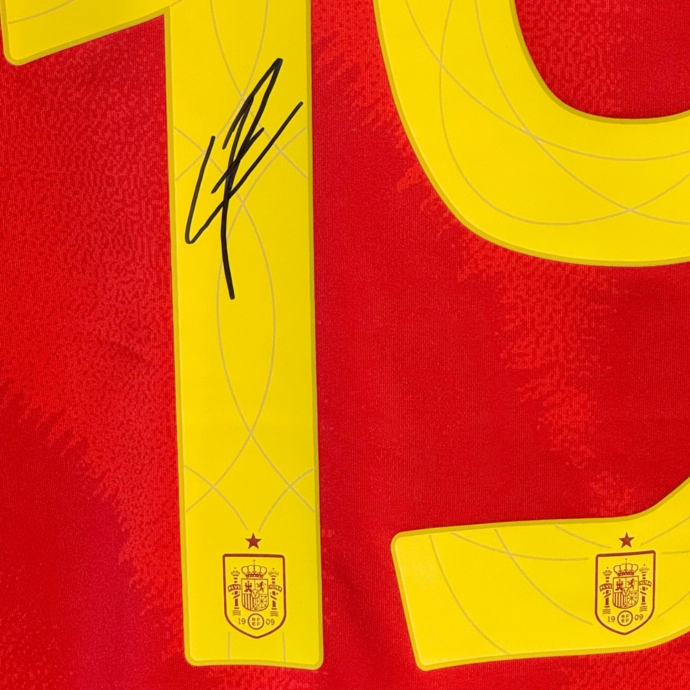 Feiern Sie den Durchbruch eines der vielversprechendsten jungen Talente Spaniens mit diesem exklusiven, handsignierten Spanien-Heimtrikot 2024 von Lamine Yamal. Dieses Trikot wurde persönlich von Yamal während einer privaten Signierstunde am 28. August 2024 in Barcelona signiert und ist von Beckett authentifiziert.