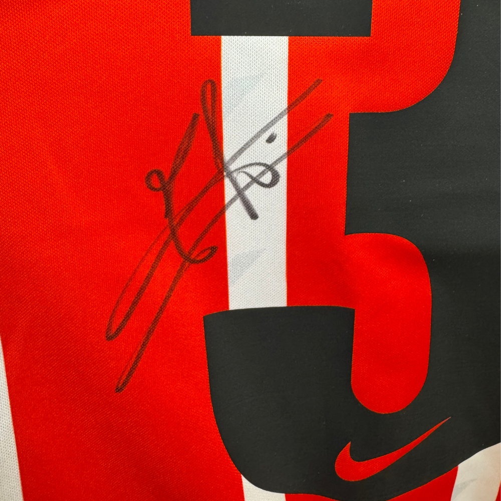 Celebra el poder y la presencia de uno de los mejores defensores del fútbol neerlandés con esta camiseta local del PSV 1995-96 firmada a mano por Jaap Stam. Esta camiseta fue firmada personalmente por Stam durante una sesión privada de firmas en Ámsterdam el 23 de diciembre de 2024.