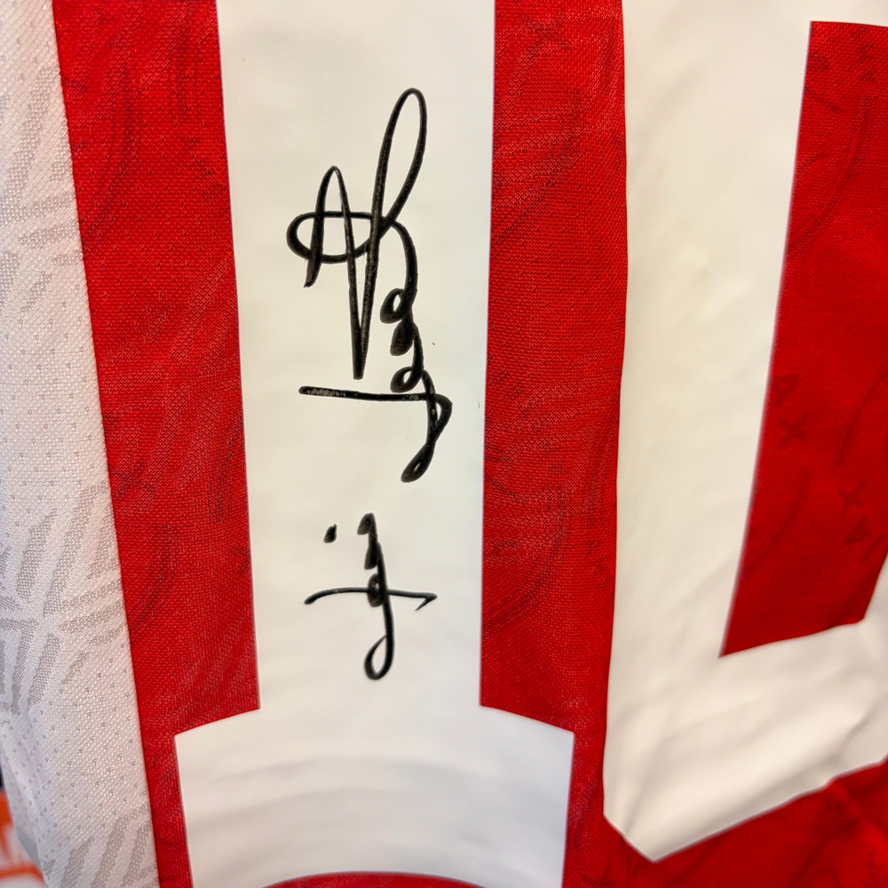 Celebrate Ajax’s golden era with this hand-signed 1994-95 Ajax home shirt by Jari Litmanen. This shirt was personally signed by Litmanen during a private signing session and comes with photo proof of the signing as authenticity.