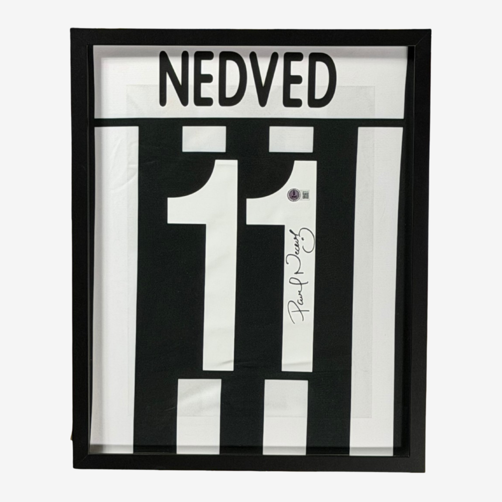 Celebra la brillantez de uno de los mediocampistas más icónicos de la Juventus con esta camiseta local 2001-02 firmada a mano por Pavel Nedvěd. Esta camiseta fue firmada personalmente por Nedvěd durante una sesión de firmas con testigo Beckett en Turín el 17 de octubre de 2024.