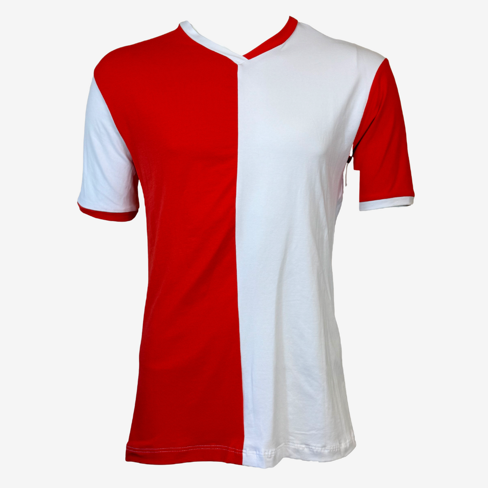 Este es el estilo de camiseta que Van Hanegem usó durante su ilustre carrera en el Feyenoord, donde se hizo conocido por su excepcional pase, visión y liderazgo. Van Hanegem fue fundamental en los éxitos nacionales y europeos del Feyenoord, consolidando su lugar como uno de los grandes históricos del club.