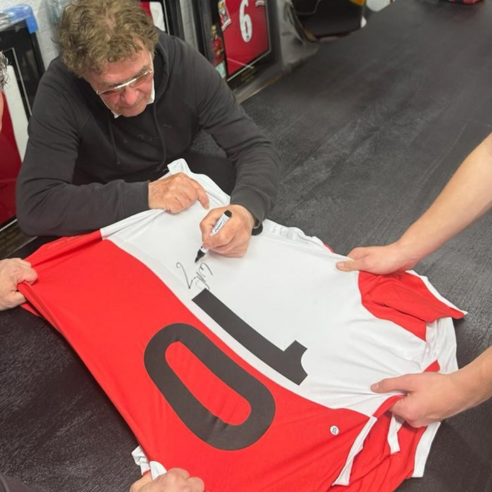 Celebra a una verdadera leyenda del Feyenoord con esta camiseta local firmada a mano por Willem van Hanegem. Esta clásica camiseta de algodón roja y blanca presenta detalles cosidos y el icónico número 10 en la espalda. La camiseta fue firmada personalmente por Van Hanegem durante una sesión privada de firmas en Ámsterdam el 26 de marzo de 2025.