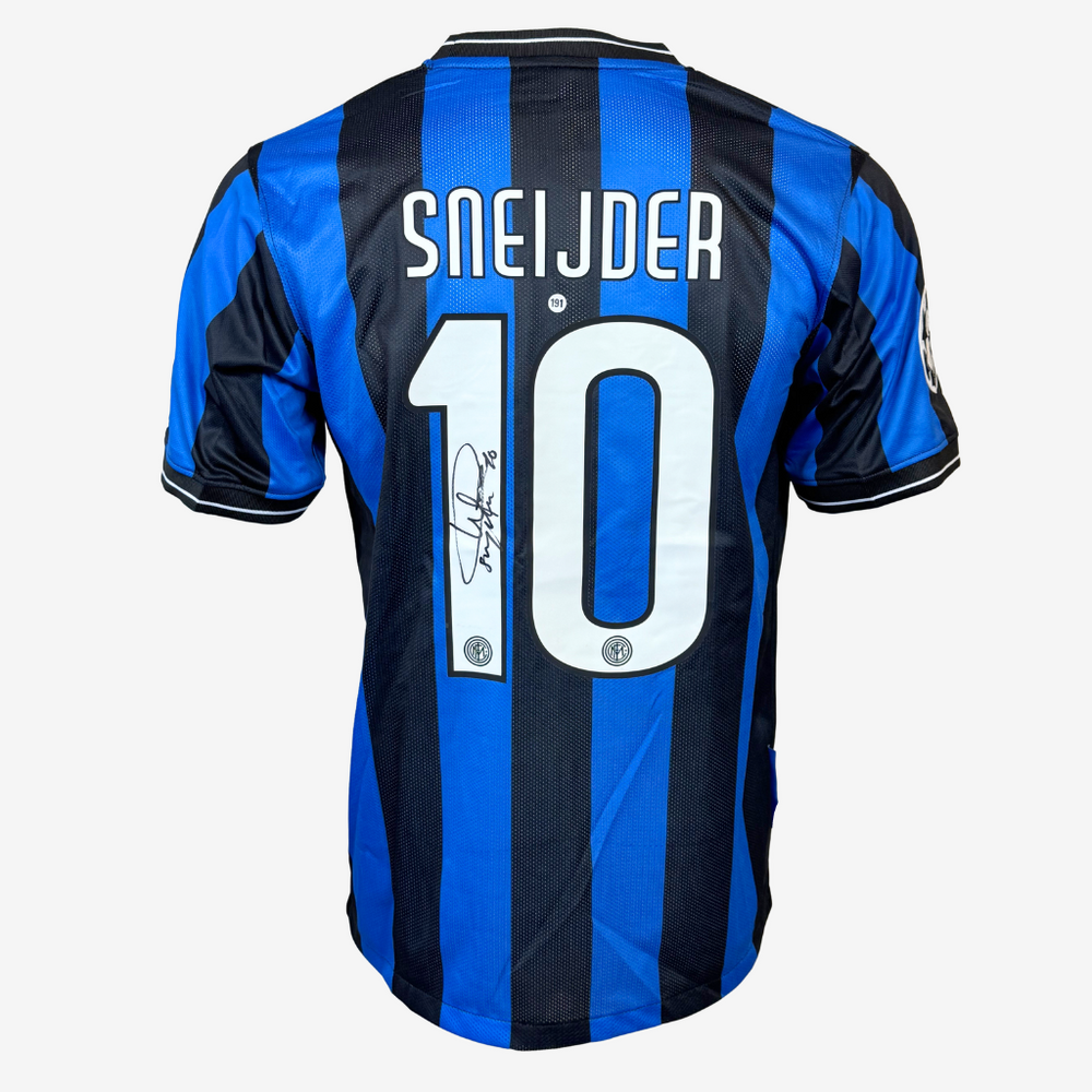 Célébrez les exploits de l’un des maestros du milieu de terrain de l’Inter Milan avec ce maillot domicile 2010 de l’Inter Milan signé à la main par Wesley Sneijder. Ce maillot a été personnellement signé par Sneijder lors d’une séance de dédicaces privée (