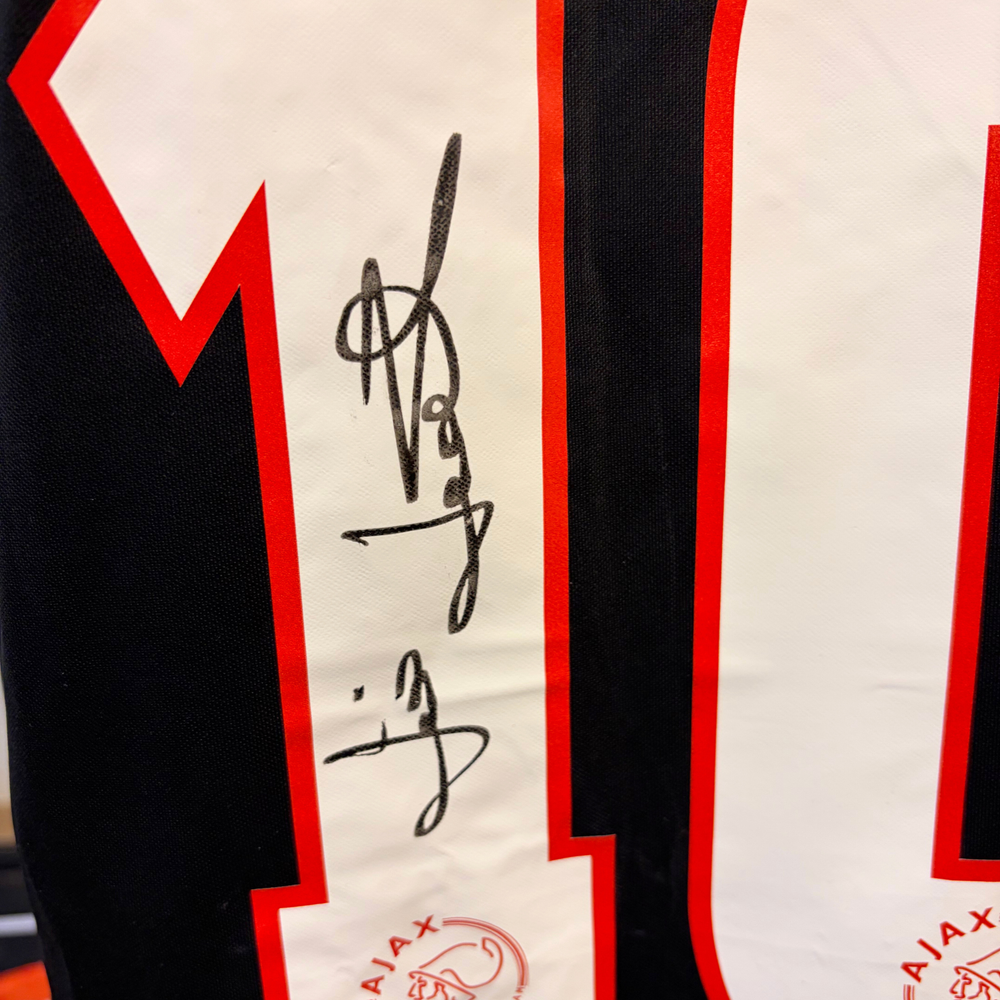 Celebrate the brilliance of an Ajax legend with this hand-signed 1998-99 Ajax away shirt by Jari Litmanen. This shirt was personally signed by Litmanen during a private signing session and comes with photo proof of the signing as authenticity. This shirt was personally signed by Jari Litmanen during a private signing session in Amsterdam on November 16, 2024.