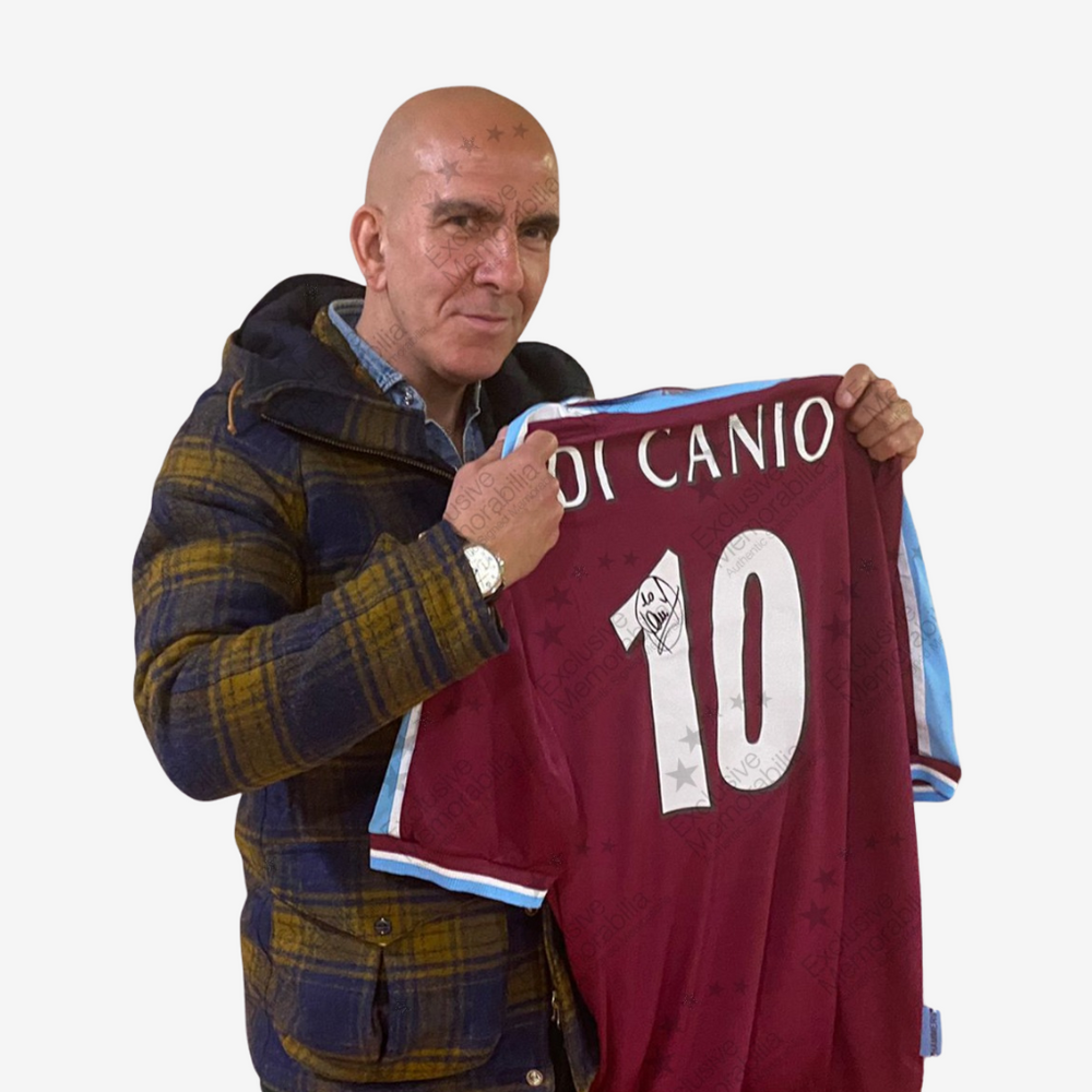 Paolo Di Canio ha firmato questa maglia a Staines il 9 marzo 2024. Questo è il modello di maglia indossato da Di Canio quando segnò la sua leggendaria rovesciata volante contro il Wimbledon nel 2000, un gol ancora considerato uno dei più grandi nella storia della Premier League. Di Canio ha segnato 47 gol in 118 presenze per il West Ham tra il 1999 e il 2003, diventando un vero e proprio eroe cult tra i tifosi degli Hammers.