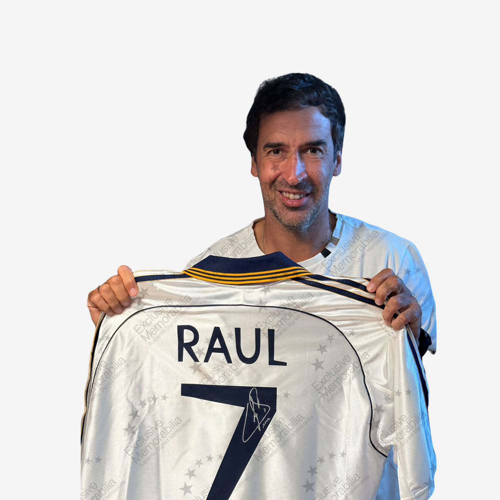 Celebrate a golden era in Real Madrid history with this hand-signed 1999-2000 home shirt by Raúl. Signed in Madrid on September 17, 2025, this shirt is a tribute to one of the club’s greatest icons and the unforgettable Champions League triumph of that season.