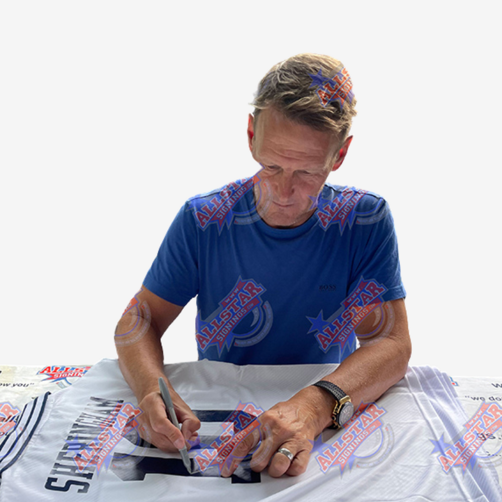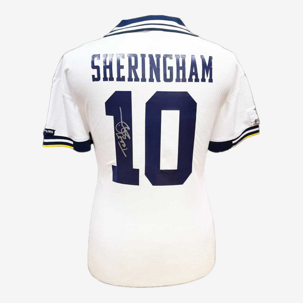 テディ・シェリンガムは2021年7月23日に行われたプライベートサイン会でこのシャツにサインをしました。トッテナムでの2度の在籍期間中に166試合に出場し、76ゴールを記録。プレミアリーグ屈指のストライカーとしての地位を確立しました。スパーズでは主要なタイトルこそ逃したものの、その知性とプレースタイルはチームメイトやファンから高く評価されました。1994-95シーズンのストライクパートナーであったユルゲン・クリンスマンは、シェリンガムを「これまで共にプレーした中で最も知的なフォワード」と評しています。