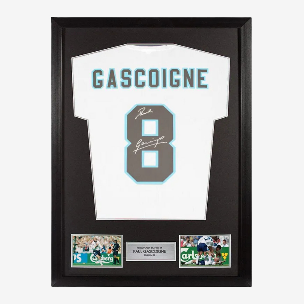 イングランドの最も象徴的なサッカーの瞬間のひとつを祝して、ポール・ガスコイン直筆サイン入りの1996年イングランド代表ホームシャツを限定販売いたします。この公式シャツは、2023年4月24日にクライストチャーチで行われたプライベートサイン会にてガスコイン本人が直筆でサインしたものです。プロフェッショナルに額装されており、サッカーの記念品コレクションの中でもひときわ目を引く逸品です。
