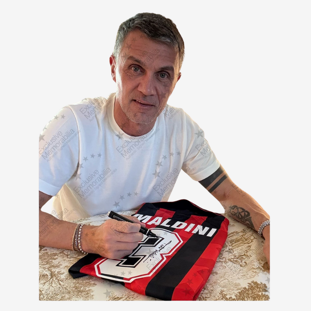 Franco Baresi personally signed his shirt in Milan on September 25, 2023, while Paolo Maldini signed his shirt in Milan on March 19, 2025. Their signatures transform these classic shirts into a unique collector’s piece, honouring the iconic 1994 season when AC Milan secured a historic treble: Serie A, European Cup, and Supercoppa Italiana.