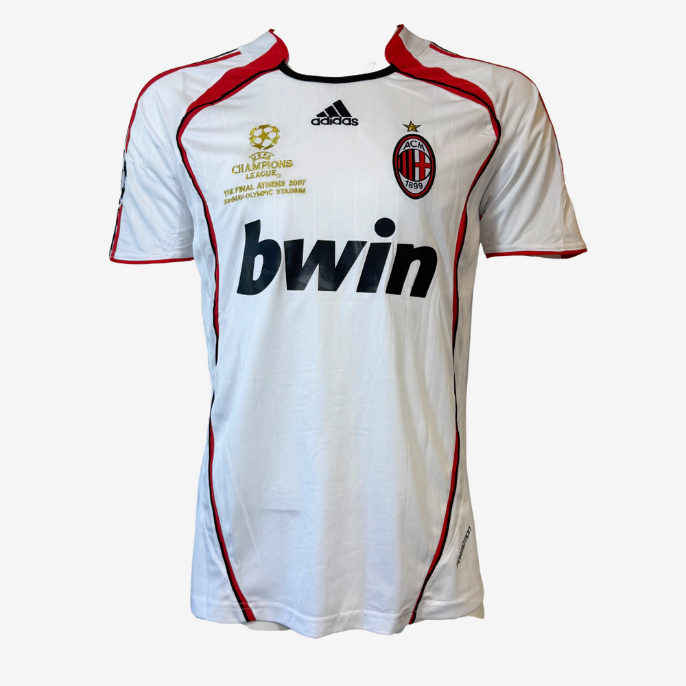 This is the style of shirt worn by Kaká during the 2007 Champions League final in Athens, where he played a key role in AC Milan’s victory over Liverpool to secure the club’s seventh European title. Kaká’s performances throughout the season earned him the UEFA Champions League top scorer award and the Ballon d’Or later that year.