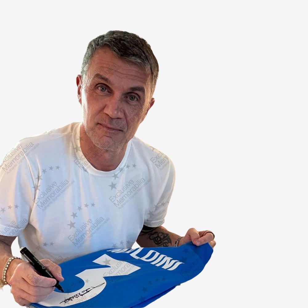 Celebrate the legacy of one of football’s greatest defenders with this original 2002 Italy home shirt, hand-signed by Paolo Maldini. This shirt features fan style printing and was personally signed by Maldini in Milan on March 19, 2025. Please note: as this is an original shirt from the era, some natural wear and tear may be present, adding to its authenticity and vintage character.