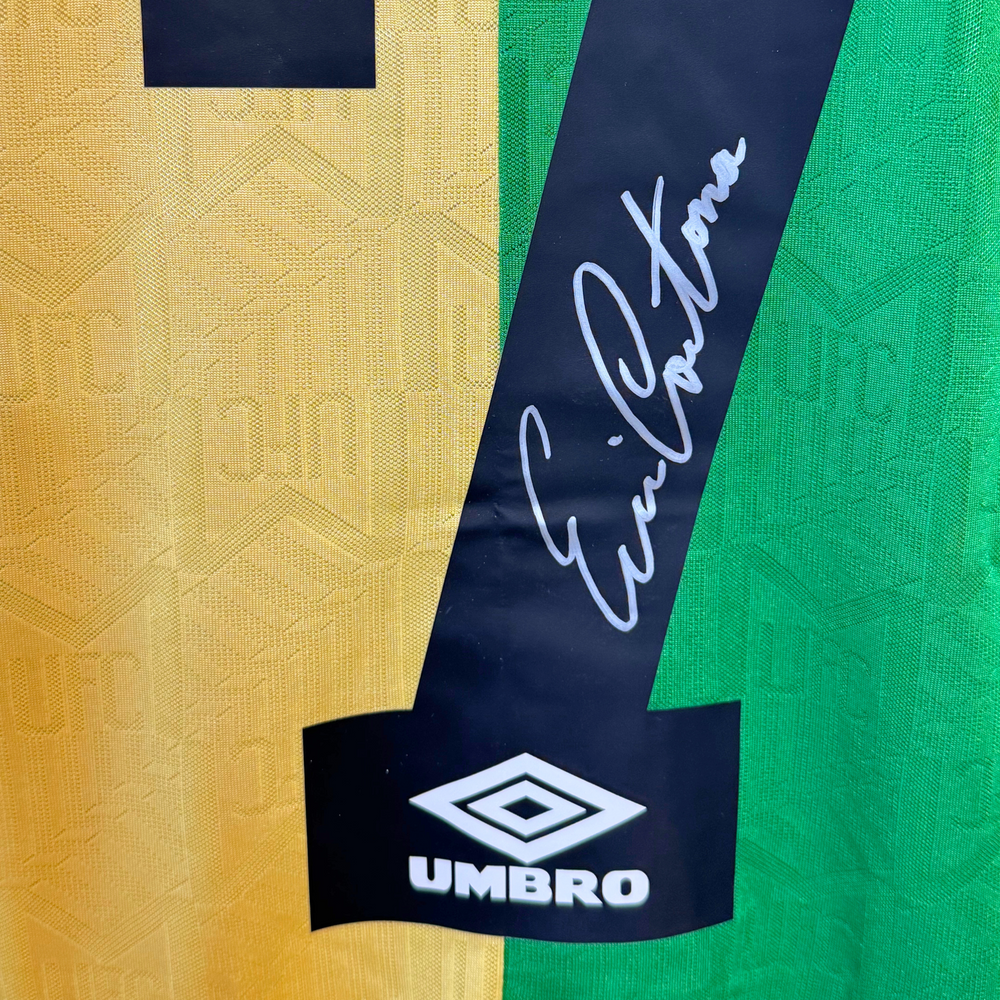 Vier de erfenis van een Manchester United-icoon met dit exclusieve, met de hand gesigneerde uitshirt uit 1992-94 van Eric Cantona. Dit retroshirt heeft het kenmerkende geel-groene ontwerp, dat Cantona beroemd droeg tijdens zijn eerste jaren bij Old Trafford. Het shirt is persoonlijk gesigneerd door Cantona en wordt geleverd met een authenticiteitscertificaat van Beckett voor volledige gemoedsrust.