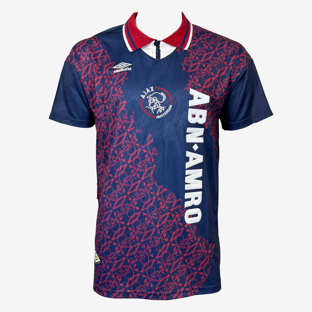 Dit is het type shirt dat Litmanen droeg tijdens de legendarische Champions League-finale van 1995, waarin Ajax AC Milan versloeg en hun vierde Europacup veroverde. Litmanen, met nummer 10, was een sleutelspeler gedurende de hele campagne en blijft een van de meest iconische figuren in de geschiedenis van Ajax.