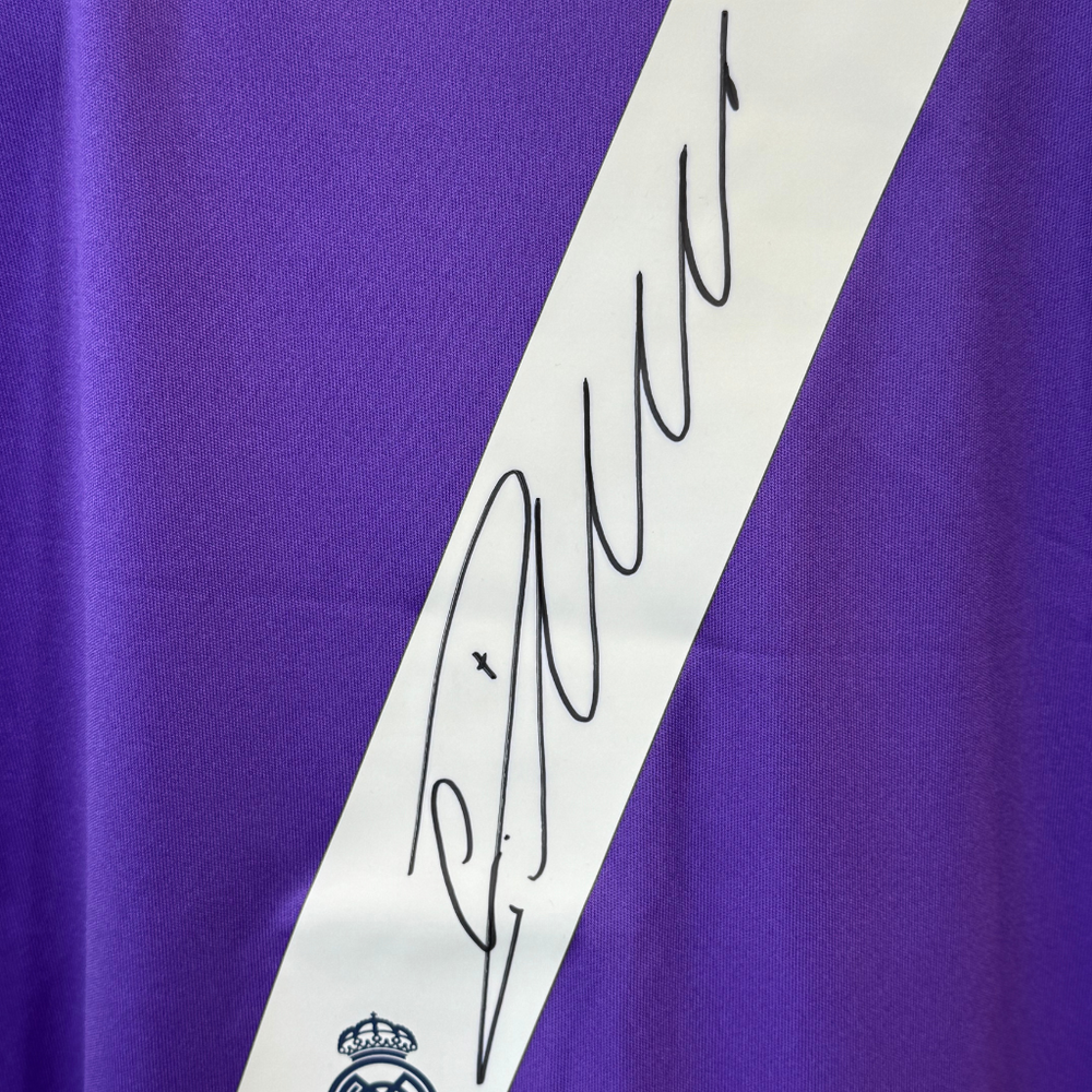 Celebrate the brilliance of Cristiano Ronaldo with this exclusive, hand-signed Real Madrid 2017 away shirt. This retro shirt is personally signed by Ronaldo during a private signing session in Lisbon in 2021 and comes with Beckett authentication.