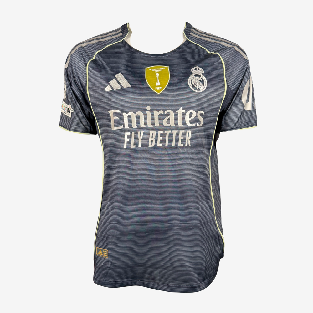 The 2025 26 away shirt reflects Real Madrid’s modern identity and ambition. Signed by Gonzalo, it symbolises the beginning of a journey at one of the world’s most prestigious clubs and offers collectors the opportunity to own a piece connected to the club’s future.