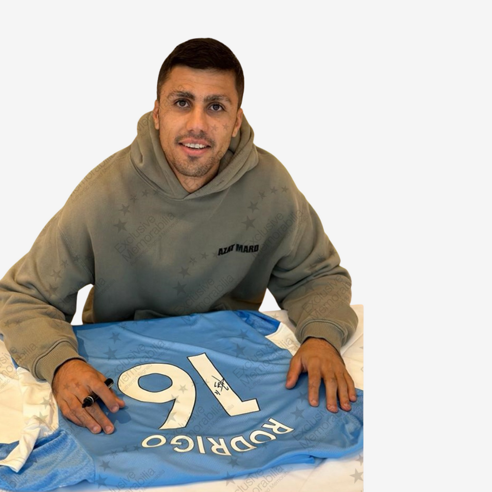 Your shirt comes with an official Certificate of Authenticity (COA) from Exclusive Memorabilia, including a photo of the signing session, the exact date and location, and a unique hologram sticker. This guarantees you a 100% authentic and highly collectible piece from a Manchester City star.