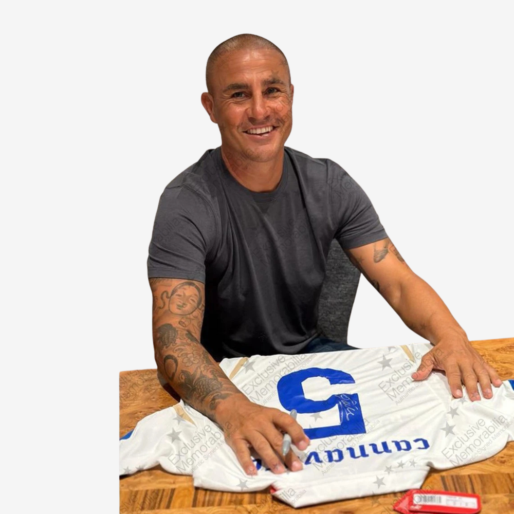 Celebrate the legacy of an Italian football legend with this Italy 2010-11 away shirt, hand-signed by Fabio Cannavaro. Signed in London on August 5, 2023, this shirt comes with tags and may show some natural wear and tear, adding to its authenticity and vintage appeal.