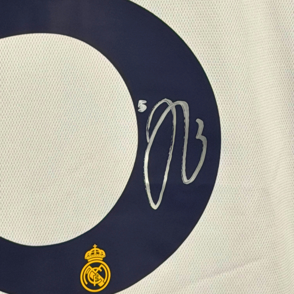 庆祝足球界最耀眼的新星之一的崛起,拥有这件由裘德·贝林厄姆亲笔签名的2023-24赛季皇家马德里主场球衣。这件球衣由贝林厄姆本人亲自签名,并由Football Memorabilia权威认证,为收藏家和球迷带来安心保障。这正是贝林厄姆在皇家马德里首秀赛季所穿的球衣款式,胸前带有2022年FIFA世界杯补丁。贝林厄姆在球场上的活力表现、出色视野和成熟心态,让他迅速成为伯纳乌球场的人气新宠,也是当今足坛最令人期待的中场球员之一。您的球衣将随附Football Memorabilia出具的正品证书,确保签名100%真实且极具收藏价值。无论您是忠实的皇马球迷、足球纪念品收藏者,还是在寻找一份特别的礼物,这件签名版2023-24赛季皇家马德里主场球衣都将是您收藏中的亮点之选。你知道吗?裘德·贝林厄姆成为历史上最年轻的英格兰球员,为皇家马德里出战欧洲杯/欧冠比赛。